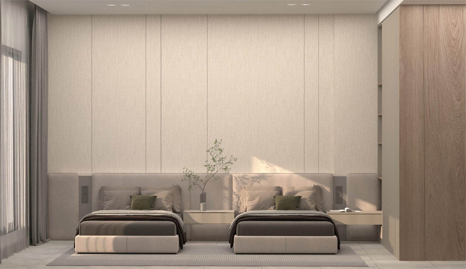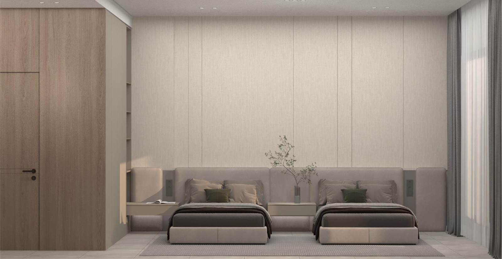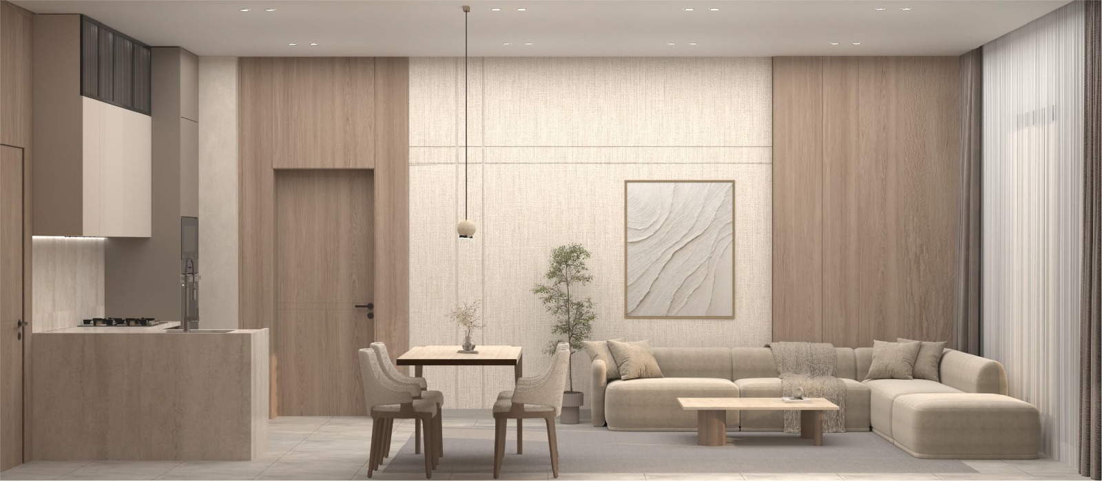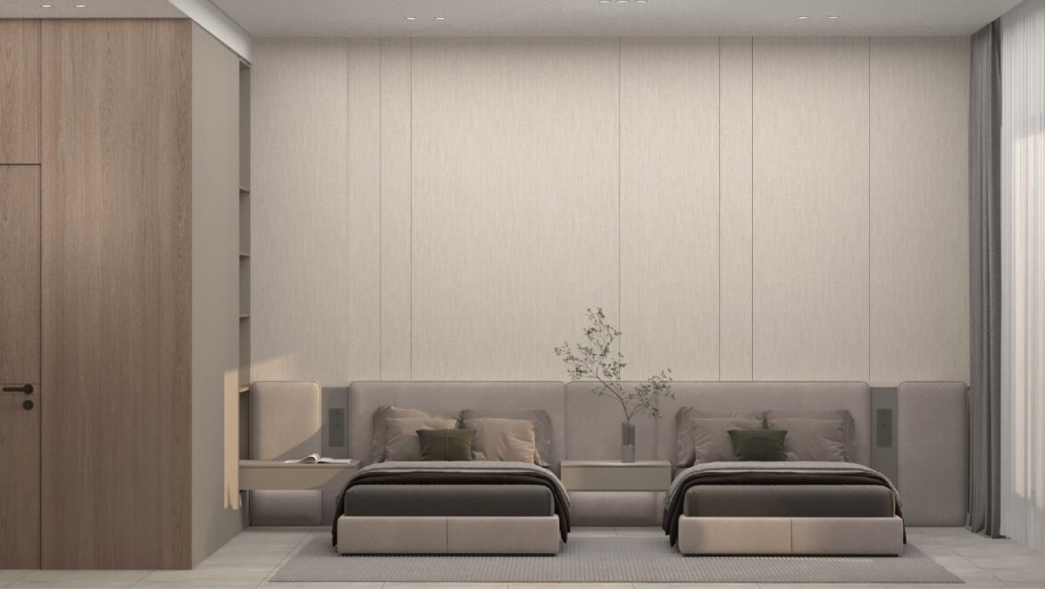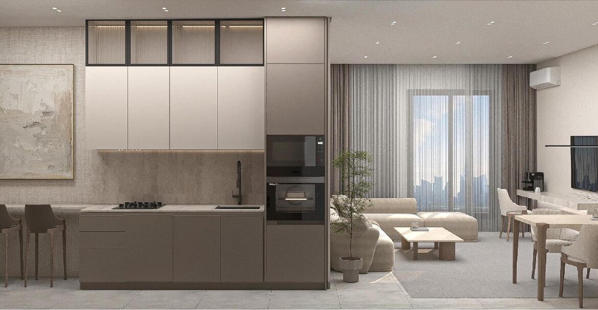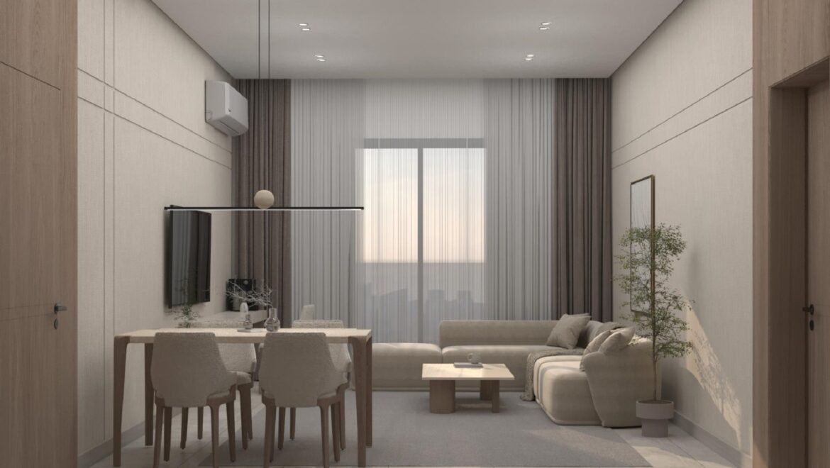 شقة بثلاث غرف نوم: بمساحات تتراوح بين 82 و117 متراً مربعاً، وتضم ثلاث غرف نوم، وحمامين، ومطبخاً، وغرفة معيشة.