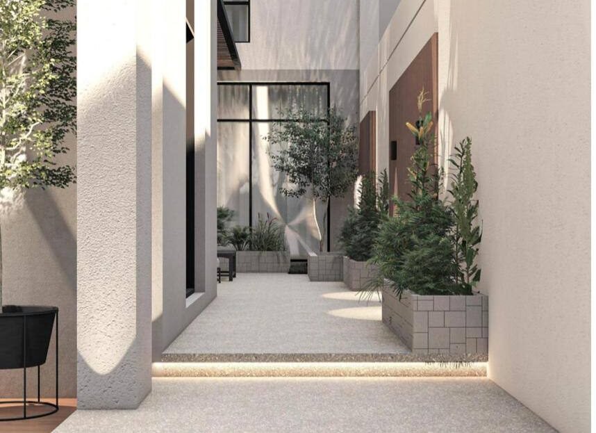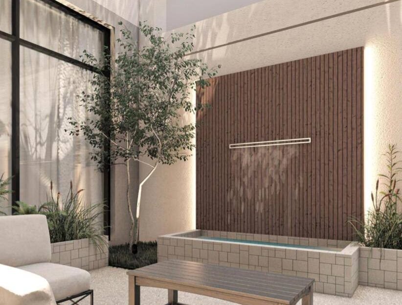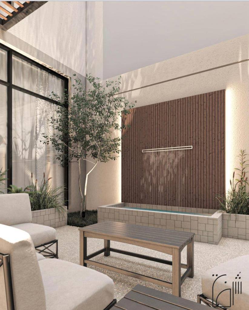 حديقة داخلية تتمحور حولها الغرف والصالات